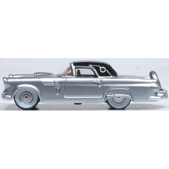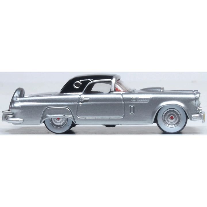1/87 Ford Thunderbird 1956 Gray Metallic/Raven Black by Oxford delivers classic American flair for vintage car collectors and HO-scale display setups.