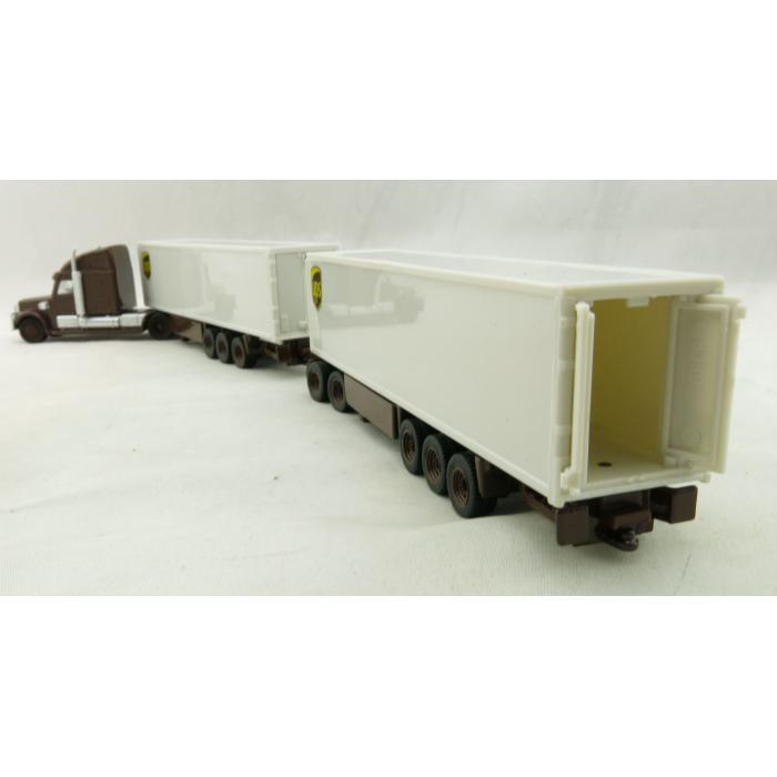 Siku is renowned for their realistic replica vehicles. Each die-cast model is made to exacting standards and exceptional quality, and feature realistic detailing. Today's toys for tomorrow's drivers, the range of SIKU toy models is as fascinating and varied as the real world of vehicles. A mighty 30-metre tractor unit and truck makes its unstoppable appearance in the SIKU range with a miniature 87 scale model! The impressive American-style truck decorated with impressive chrome parts tows twin 3-axle luggage trailers linked with a Dolly over lonely highways. 22 wheels with rubberized tyres give a smooth ride on any surface..