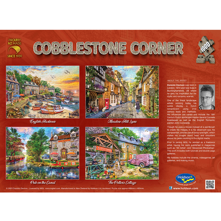 Cobblestone Corner series features four scenes to choose from or collect them all: English Harbour, Meadow Hill Lane, Pub on the Canal, and The Potter's Cottage.