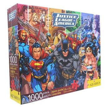 Modern Age's best superheroes? Prove me wrong. Either way, this puzzle is a great one for all lover's DC. Aquarius puzzles are manufactured with a thick quality stock paper with high-quality striking images from pop art and pop culture, science and comics. Their images appeal to everyone, and the quality of their puzzles appeals to the serious puzzler. Truly an excellent puzzle to begin with for the new puzzler and a company you will follow year to year. Size 28'' 20''.