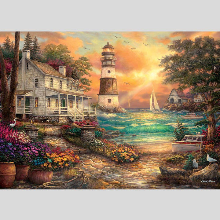 Whether it's the depiction of friendly communities, times past by, or the grandeur of the countryside, Chuck wants to bring you to the place where you can feel the water flowing, hear the birds chirping, and almost touch the soft grass or colorful blooms, so that you can sit back, relax, and dream. Titles are: Cottage by the Sea, Into the Sunset, Love the Beach, and Sunrise by the Sea.