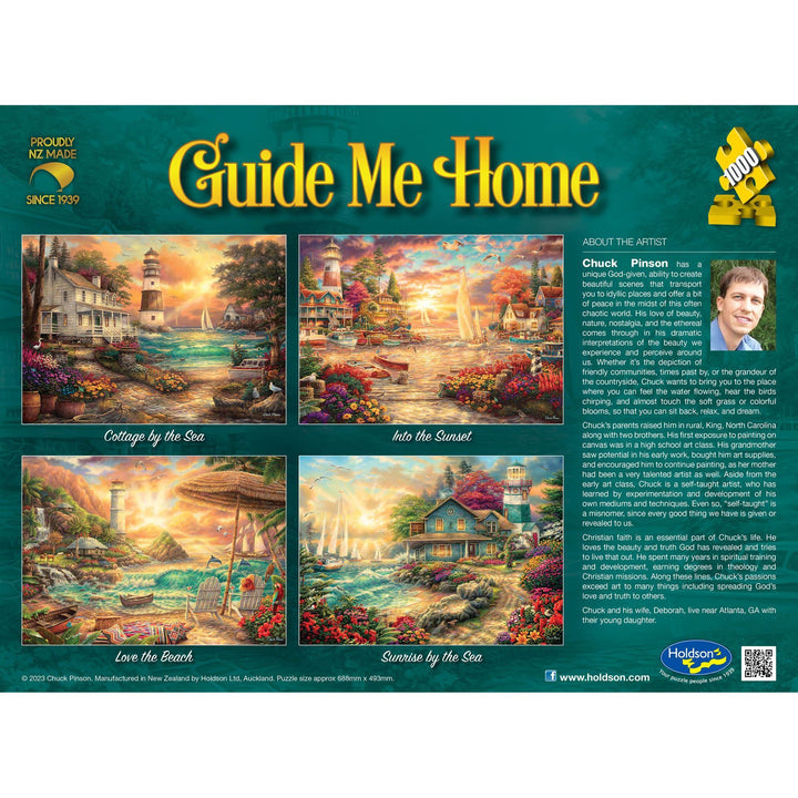 Whether it's the depiction of friendly communities, times past by, or the grandeur of the countryside, Chuck wants to bring you to the place where you can feel the water flowing, hear the birds chirping, and almost touch the soft grass or colorful blooms, so that you can sit back, relax, and dream. Titles are: Cottage by the Sea, Into the Sunset, Love the Beach and Sunrise by the Sea.