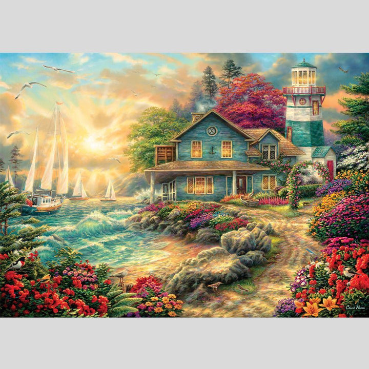 Whether it's the depiction of friendly communities, times past by, or the grandeur of the countryside, Chuck wants to bring you to the place where you can feel the water flowing, hear the birds chirping, and almost touch the soft grass or colorful blooms, so that you can sit back, relax, and dream. Titles are: Cottage by the Sea, Into the Sunset, Love the Beach, and Sunrise by the Sea.