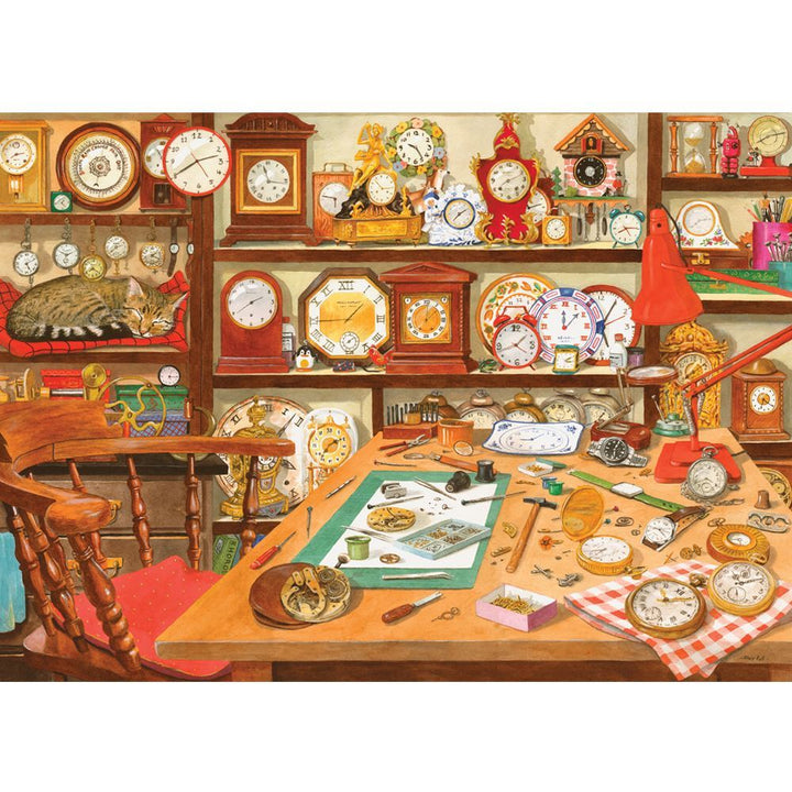 The 'Made For You' series features workshop scenes that illustrate cats do sleep anywhere! There are four 1000 piece jigsaw puzzles to choose from (each sold separately) or collect them all: Luthiers Workshop, Potters Studio, Toymakers Workshop, Watchmakers Workshop.