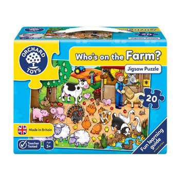 Who's on the Farm includes a fun learning guide on the back of the box, which features different discussion points to talk about once the puzzle has been completed. This includes questions to encourage observation, develop counting and develop knowledge of the world e.g. How many apples can you count? What is a baby pig called?