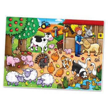 This fun 2 piece jigsaw features a busy farmyard scene with lots of animals to spot, including cows, sheep, chickens and pigs.