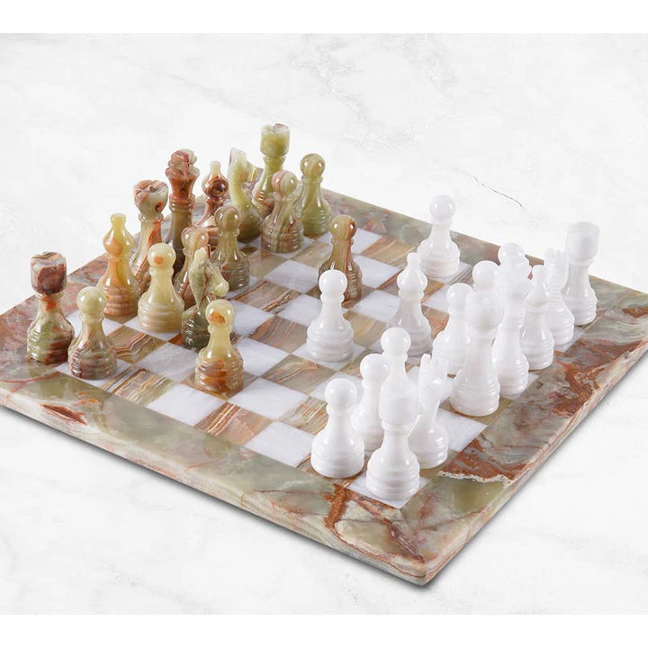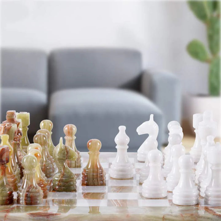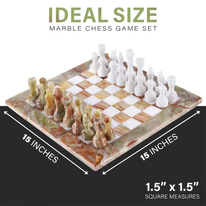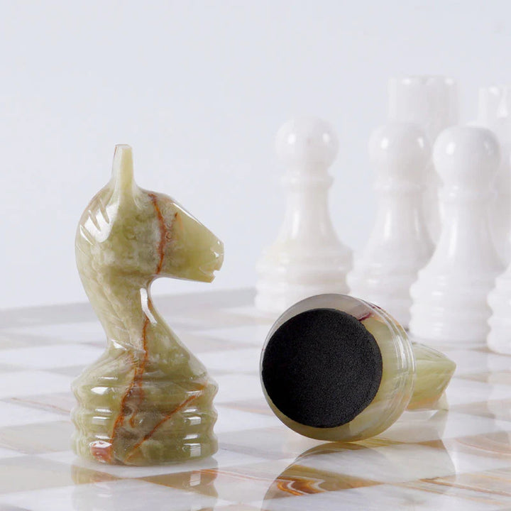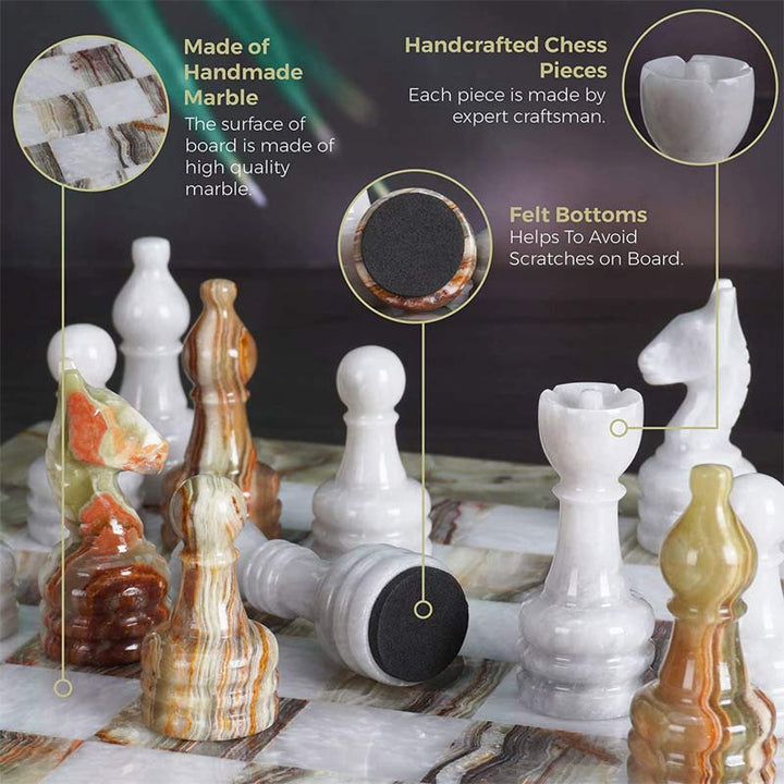 MATERIAL: This chess set is fully handmade from high-quality marble onyx. Chess Board & Chess Figures are fully hand polished.
