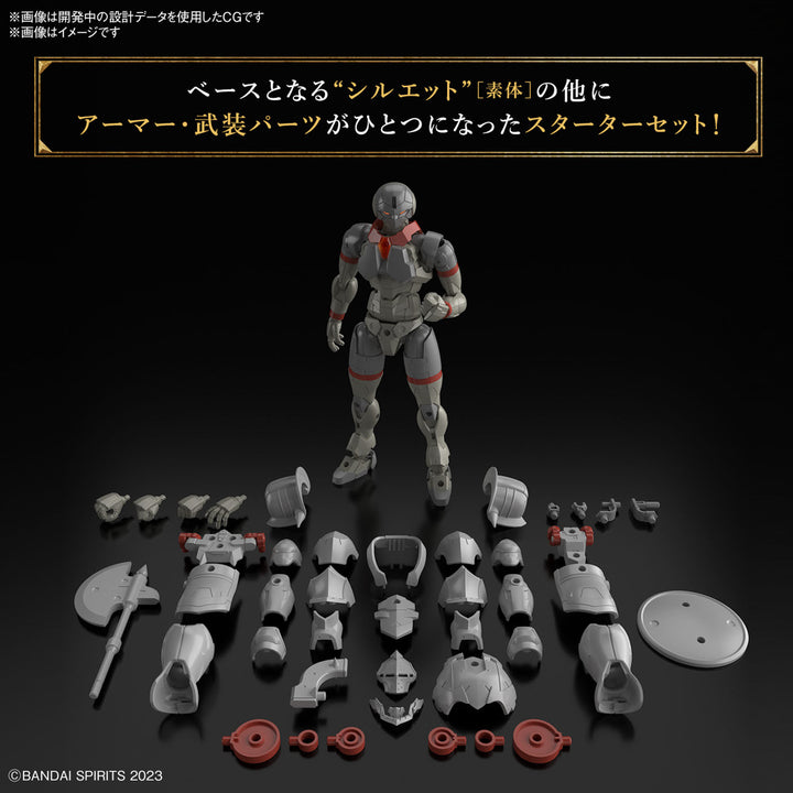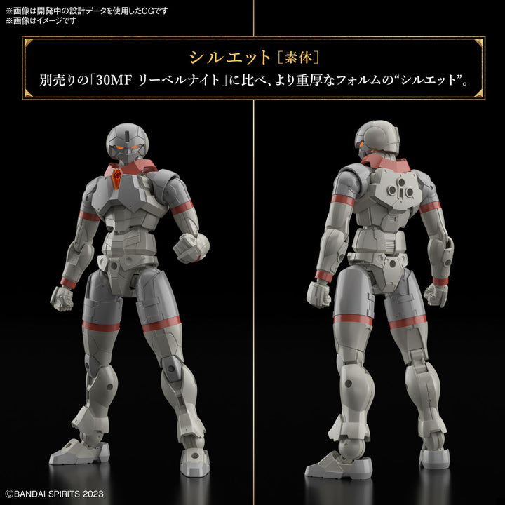 The Liber Fighter hails from Bandai's "30 Minutes Fantasy (30MF)" model-kit series, where you can create your own fantasy job! This starter set includes the base Silhouette (body) as well as armor and weapons. The Silhouette is capable of flexible human-like actions, and can be used for just about any sort of fantasy job. The head and neck have movable axes, allowing you to tuck his chin in, or stick his face out! The shoulder joints are designed with great care to keep the body line intact, even in bold poses. The movable axes on the chest, torso and waist work in conjunction with the sliding mechanism at the base of the waist joint, allowing for natural poses. The Silhouette has a more substantial form than the separately sold Liber Knight.