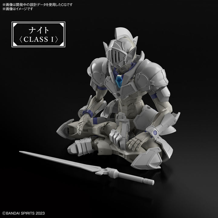 Bandai's new figure-kit series, "30MF (30 Minutes Fantasy)," debuts with the Liber Knight! This new lineup allows you to create your own fantasy-based figures and characters! The starter set includes armor and armed parts in addition to the base "silhouette" (elementary body). The "silhouette" is fully posable like a human body; movable axes are provided on the head and neck for natural flexibility. The new structure of the shoulder joint keeps the body line intact, even in bold poses. The movable parts of the chest, torso, and waist work together with the sliding mechanism at the base of the waist joint to create natural poses. Armor and armed parts are included to combine with the "silhouette" to create the Liber Knight! A new mechanism for attaching shoulder and waist armor via joints on the back allows for flexible movement; swords and shields can also be mounted on the back or waist with joint parts. Order him for your own collection today!