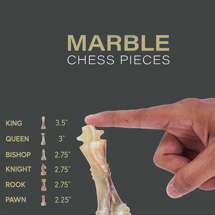 MATERIAL: This chess set is fully handmade from high-quality marble onyx. Chess Board & Chess Figures are fully hand polished.