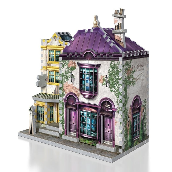 Now you can recreate two Diagon Alley mainstays -- Madam Malkin's Robes for All Occasions and Florean Fortescue's Ice Cream Parlour -- with this 290 piece 3D puzzle set! Piece together Madam Malkin's shop where wizards and witches find their school uniforms, cloaks, and dress robes, along with Florean Fortescue's yummy treat shop right next door, where Hagrid got Harry Potter a large ice cream on his first visit to Diagon Alley. Made of 290 tight-fitting foam-backed pieces, this 3D puzzle is an essential part of the Diagon Alley Collection that Harry Potter fans can assemble and place next to each other to recreate Diagon Alley. Puzzling is more than just fun but enhances logical thinking, problem-solving skills, memory, focus and confidence. Plus it a perfect avenue to have fun and be entertained.