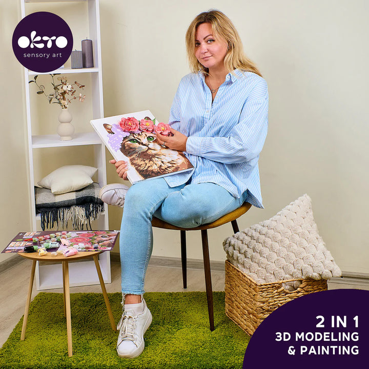 3D Modeling+Painting Kit 30x40cm - A Cat in a Flower Crown