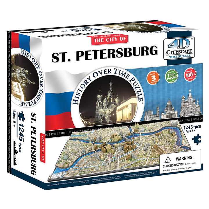 Within his 4D Cityscape Puzzle, complete with architectural replicas, you'll not only be able to rebuild the cityscape of St Petersburg, but you can also view it across its development from the year 1703. Start with the historical jigsaw puzzle map, and then build on top of this with a modern day map jigsaw layer. Then comes the fun part: the construction of buildings in the order of which they were completed. Start with the royal grounds of the Tauride Palace in 1789, and continue to more modern times with the Kirov Palace of Culture, built in 1937.