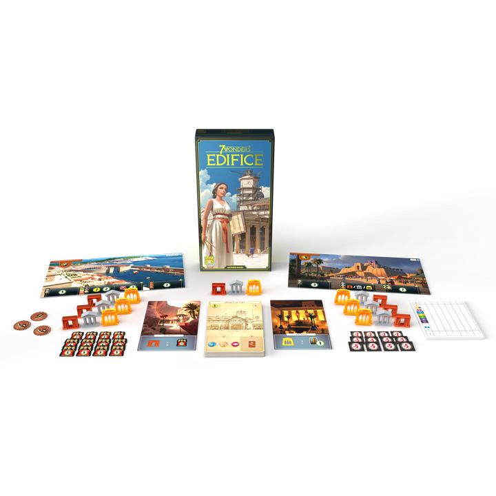 In 7 Wonders Edifice, develop cities and build edifices together. You have the choice: join your opponents and share glory and rewards, or go it alone and suffer the consequences.