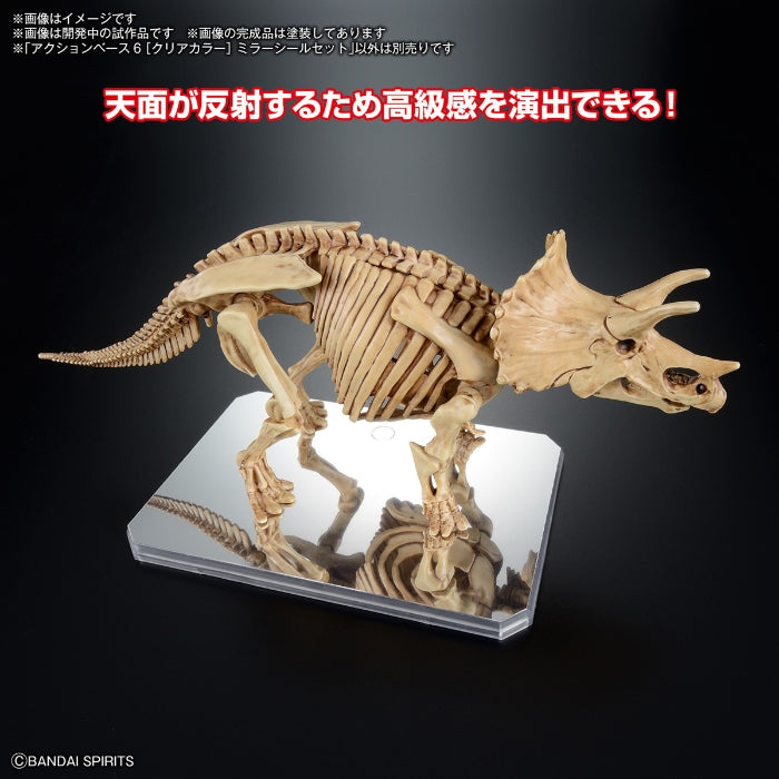 Bandai's extremely useful Action Base 6 (Clear Color), which is perfect for displaying small plastic models, is now available as a set with mirror stickers that expand the range of your display options! Use the mirror stickers to enjoy different angles of display. A protective film is attached to the mirror sticker, so you won't have to worry about fingerprints while you're putting the sticker in place, and an auxiliary sticker for peeling off the protective film is included as well. You'll get two bases in the set. Order yours today!