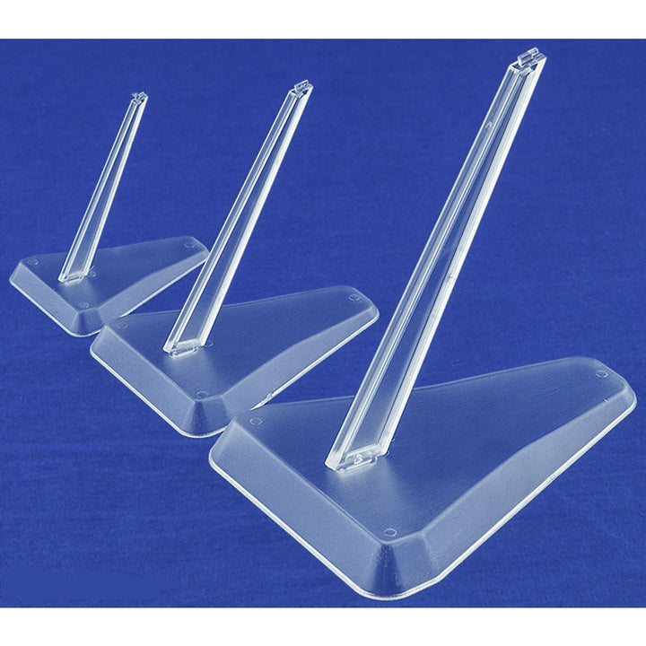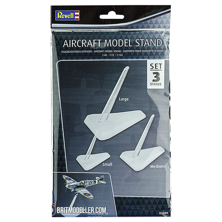 If you prefer to present your built aircraft model dynamically in flight instead of standing on the ground, you can now easily do this with these universal model aircraft stands. The set includes three stands made of transparent plastic for aircraft models in 1:48, 1:72, and 1: 144 scale.
