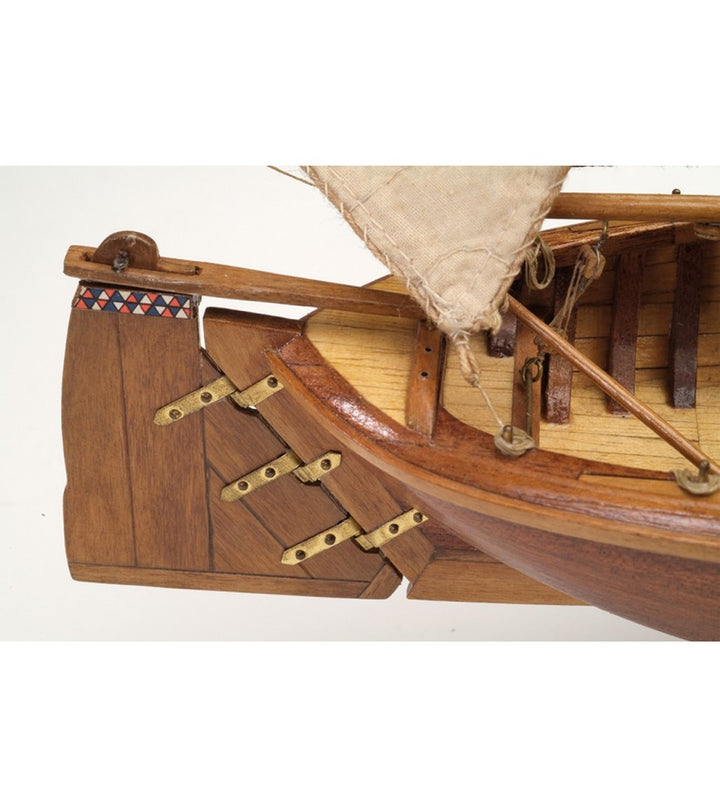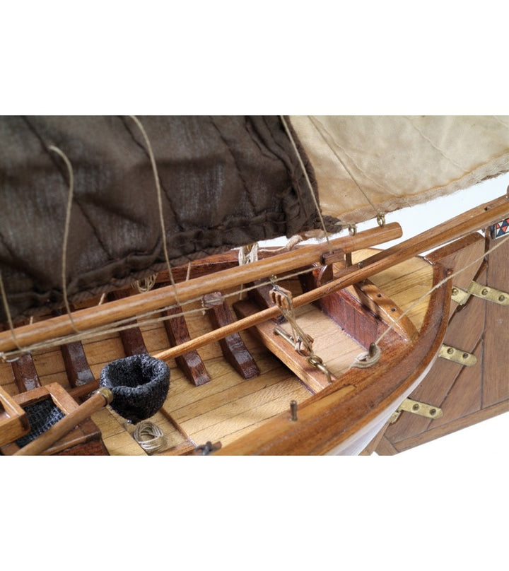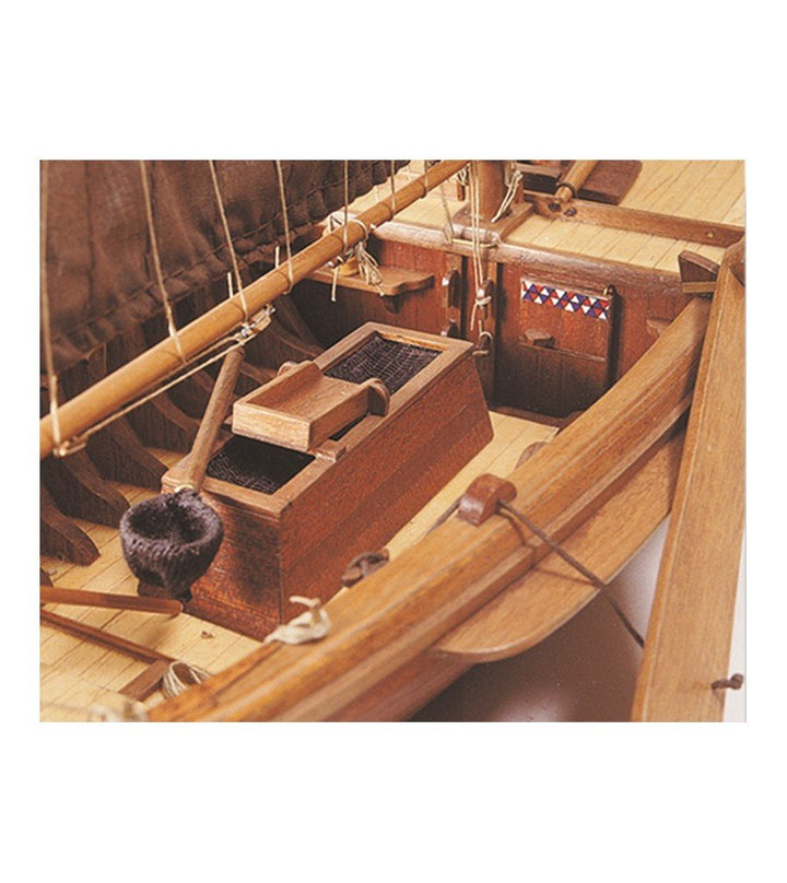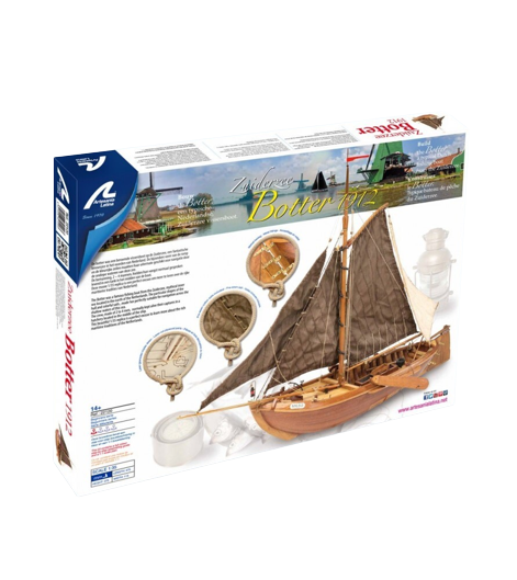 Wooden model ship kit of the Dutch traditional fishing boat called Botter. With the acquisition of this model ship, you will have all the necessary parts to complete this faithful replica at 1/35 scale: wood, hand-sewn sails ready to be placed, threads, metal accessories... Everything prepared for modelers with at least an intermediate level of skills. Once it is assembled, the Botter model ship measures 18.70'' (475mm) length, 4.52'' (115mm) width and 14.76'' (375mm) height. A beauty for your naval model collection!