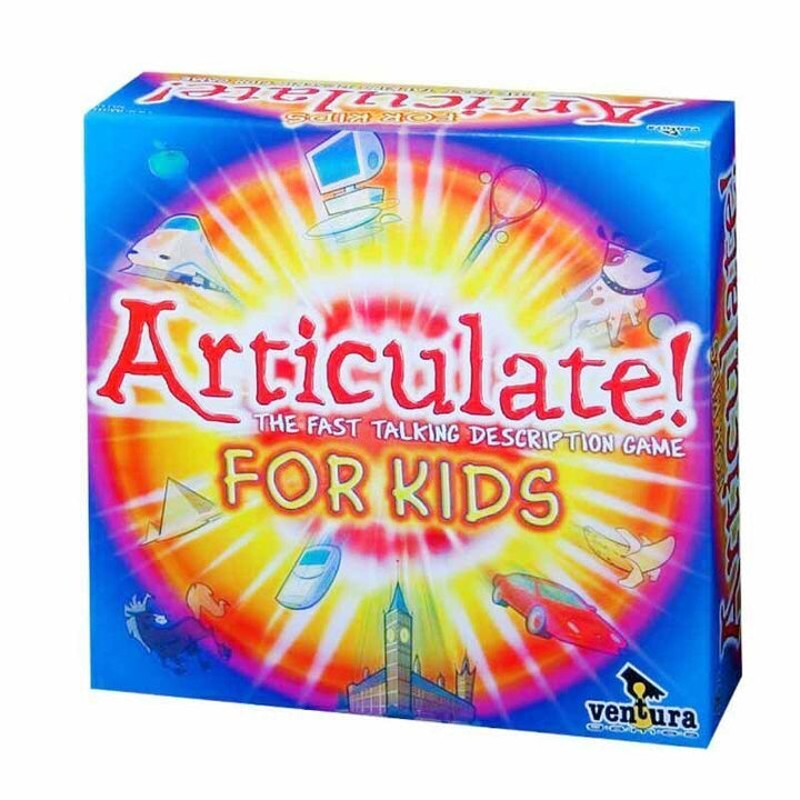 A guaranteed funtime for everyone! The fast-talking description game, Articulate for Kids is as fast-moving and fun as the adult version! How quickly can you describe a word without actually saying it? Describe as many card entries as possible for your team mates in 30 seconds without giving "begins with" or "sounds like" clues. Speed is of the essence in this fast-thinking, fast-talking game - the more words your team can guess from your descriptions in 30 seconds, the quicker you'll cross the finishing line. When it comes to fast, frenzied fun and exhilarating entertainment, Articulate simply has no rivals! Contents: 336 Subject cards containing 2000 topics, game board with arrow spinner, gameplay instructions, sand timer and 4 player markers