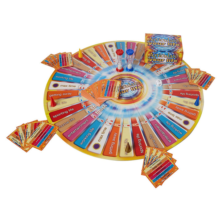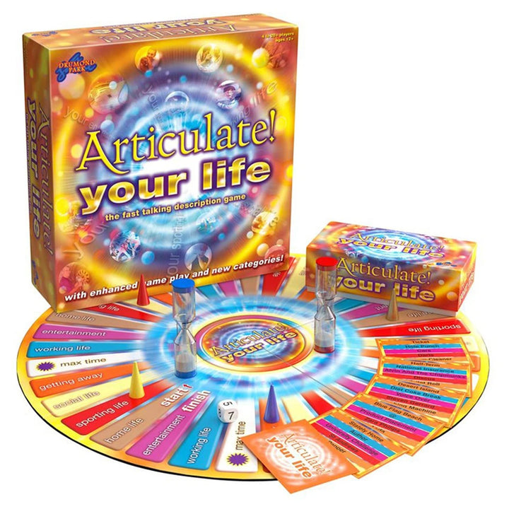 Articulate Your Life is the exciting, fast-paced description game that takes all the fun of the Classic Articulate game and gives it a TWIST. With new categories, new bonuses, and a random electronic timer - it's a whole new description game! Hilarious descriptions, high spirits, and gales of laughter make Articulate Your Life irresistible. Everyone from stroppy teens to laid-back grandparents agrees, it's just brilliant! Team members describe as many card entries as they can to their team-mates in the time allowed. The new categories present a whole new challenge and the bonus dice sets targets to add those vital extra points that can win or lose the game!