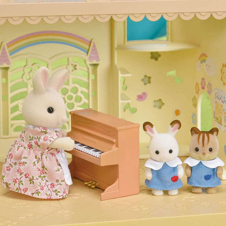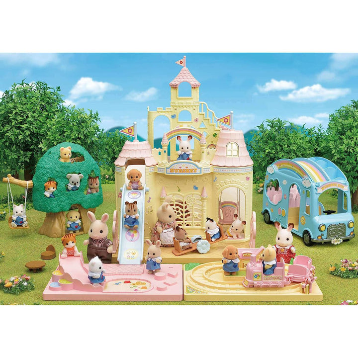 Welcome to the Baby Castle Nursery, the most fun place in Sylvania to start learning your ABCs! This cute nursery school building has been designed in the shape of a castle and features colourful decorations and playground equipment like a slide, swing and seesaw. The reversible floor panel can be adjusted to change the internal/external floor space of the building, and when you connect the Baby Castle Playground your castle nursery will become even more magnificent!