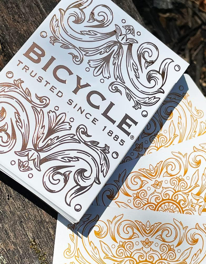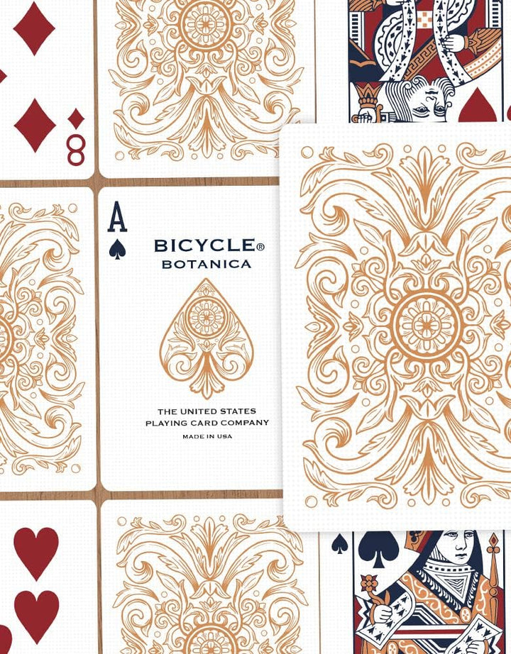 Rooted in expert craftsmanship, design, and high quality, Bicycle is the trusted authority on cards since 1885 and is now the most widely used playing card brand in the world. Our specialty Botanica playing cards are made with classic Bicycle card stock, featuring an air-cushion finish for easy handling and shuffling during any game. Deal a hand with friends and experience the stunning botanical-themed design and copper foiling that is sure to impress your friends and family!