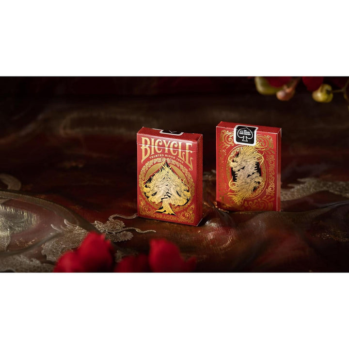 - GOLD FOIL ACCENTS: Experience a mesmerizing touch with our Bicycle Red Dragon Playing Cards, featuring an stunning gold foil application. The tuck features a beautiful gold foil accent for a high-end look and feel.