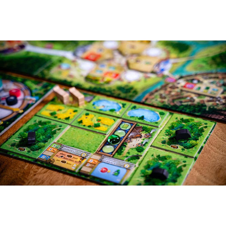 In Black Forest, you start out with a small domain in need of new buildings and livestock. You’ll travel from village to village to enlist the aid of the best tradespeople. Working with these tradespeople allows you to collect resources, build new ponds and fields, and construct a variety of buildings.