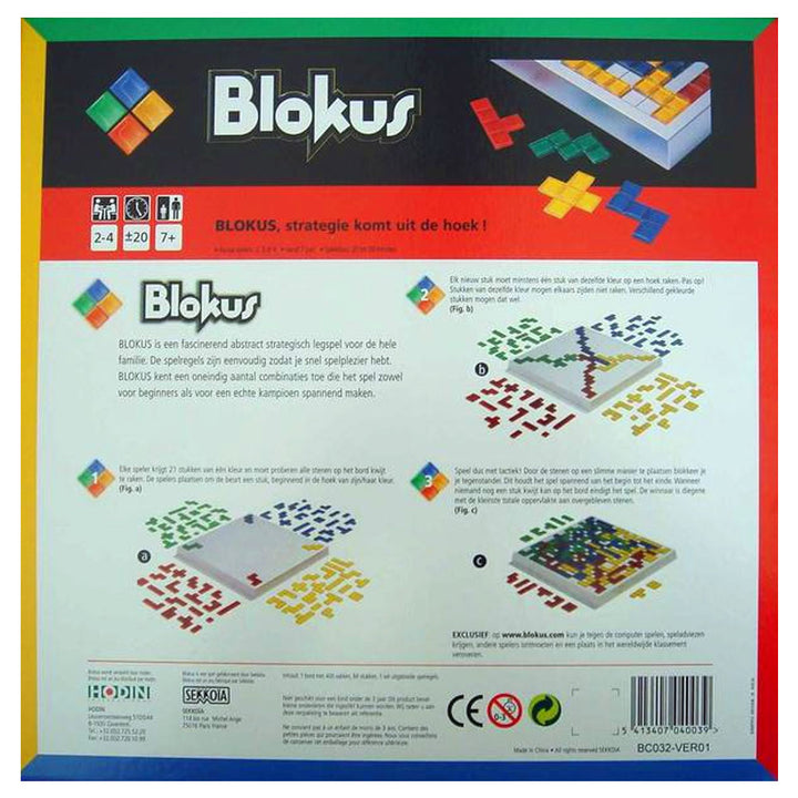 Stake your claim and protect your territory with Blokus game! Blokus (officially pronounced "Block us";) is an abstract strategy game with transparent, Tetris-shaped, colored pieces that players are trying to play onto the board. The only caveat to placing a piece is that it may not lie adjacent to your other pieces, but instead must be placed touching at least one corner of your pieces already on the board. There is a solitaire variation where one player tries to get rid of all the pieces in a single sitting.