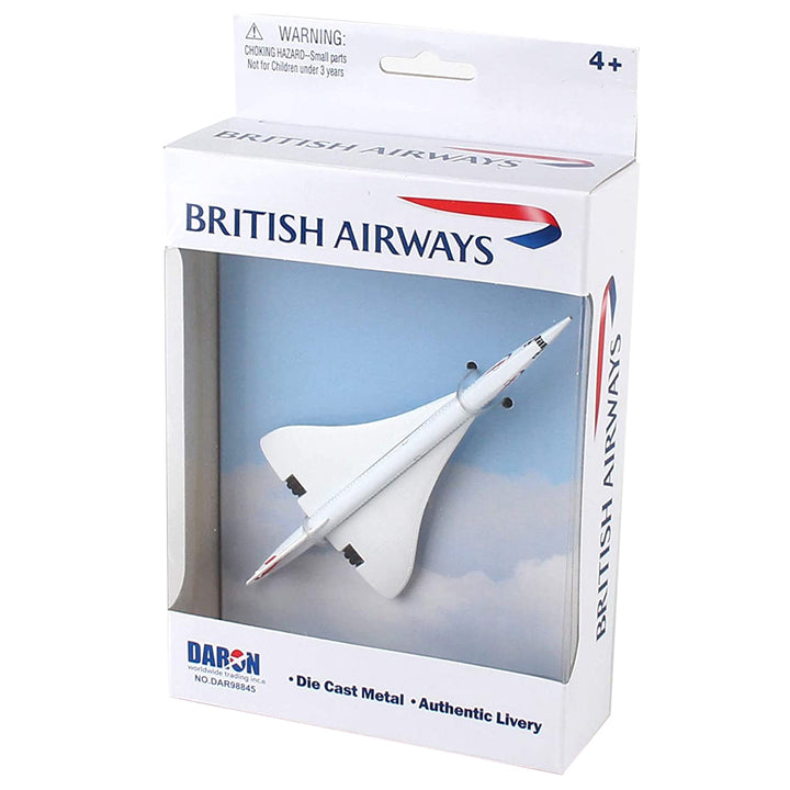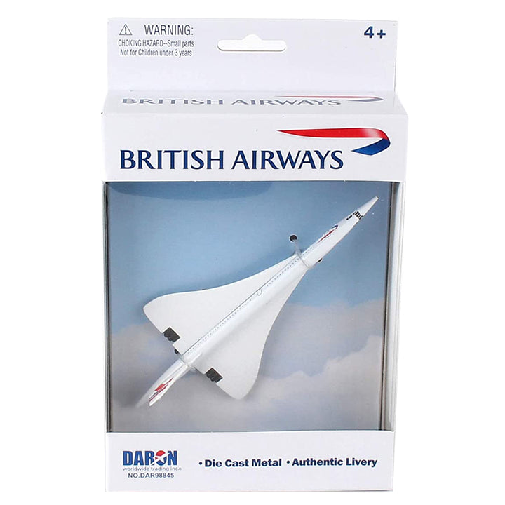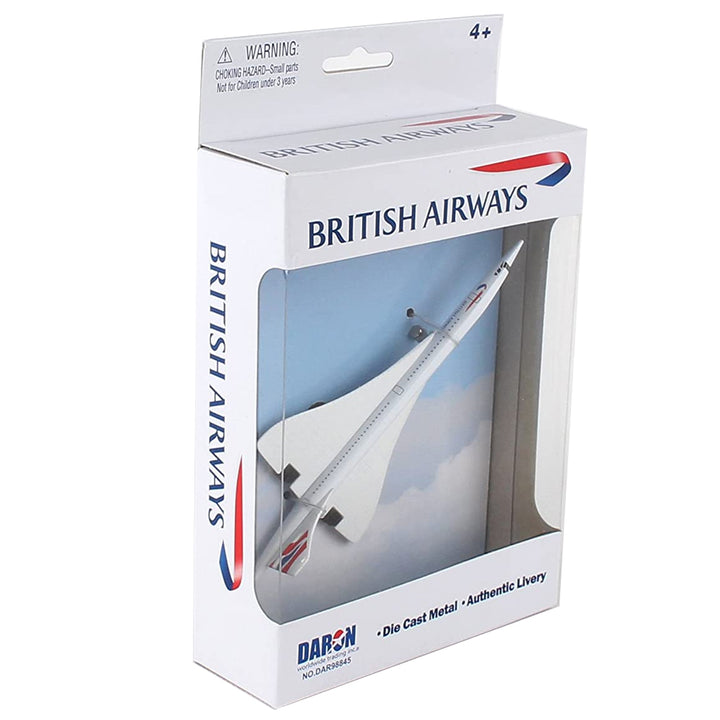 Go the extra mile with this brilliant commercial jet from Daron. This British Airways Concorde Single Plane is a scale diecast model replica. It features rolling wheels and great detail. It comes in white colour. It's a terrific choice for any airplane collection.
