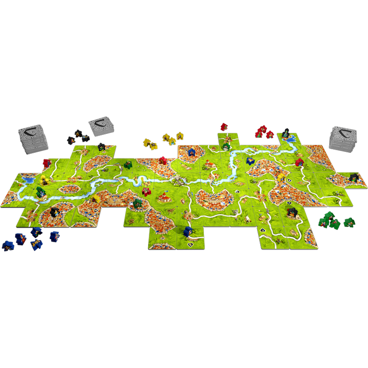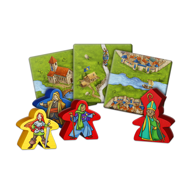 Rulebook, 1 Supplemental Rulesheet, 87 Land Tiles, 17 River Tiles, 40 Meeples, 5 Abbotts, 1 Scoreboard, Character Stickers
