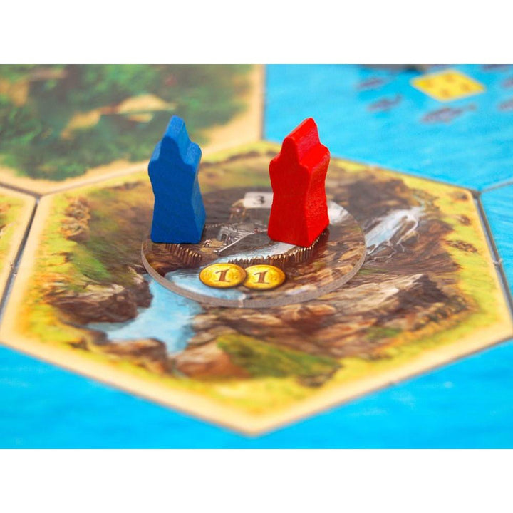 Sent out by the Council of Catan, you set out for uncharted areas to build new outposts. The sketchy information available indicates that dangerous pirate lairs, rich fishing grounds, and helpful indigenous villages await you beyond the horizon.