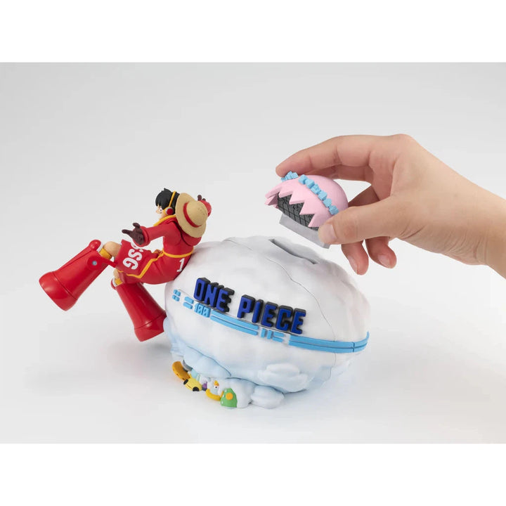 Monkey D. Luffy joins the Chara Bank Standard series! Enjoy the dynamic Luffy alongside the simple yet colorful "Future Island", Egghead. It also functions as a coin bank, holding over 50 ¥500 coins.