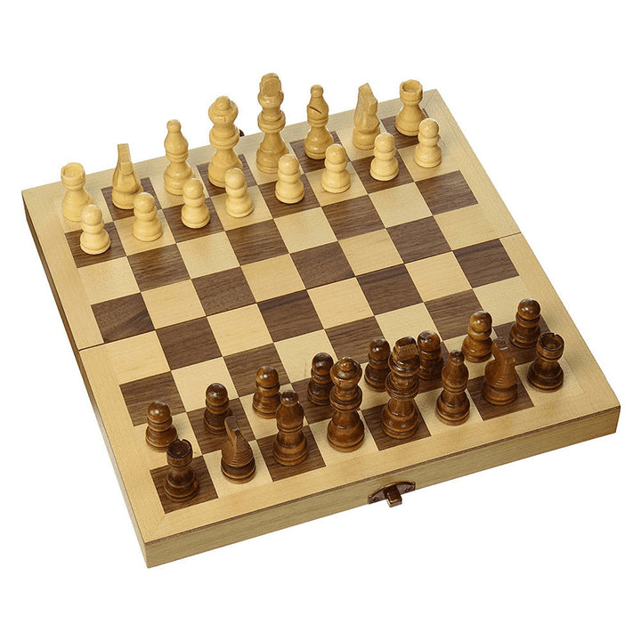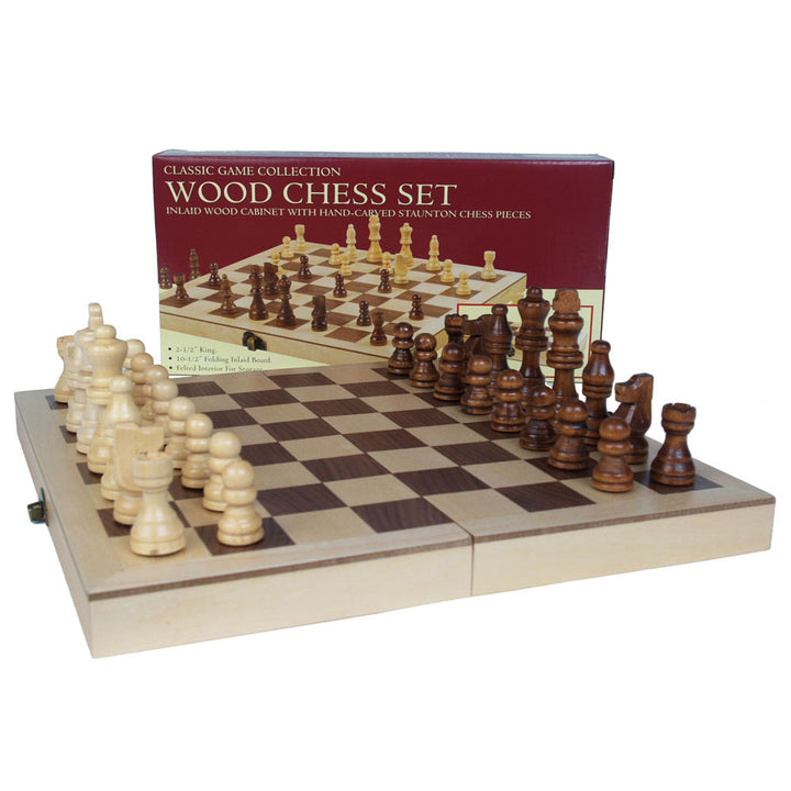 • This superb wooden chess set features a 10.5" x 10.5" folding inlaid wood board