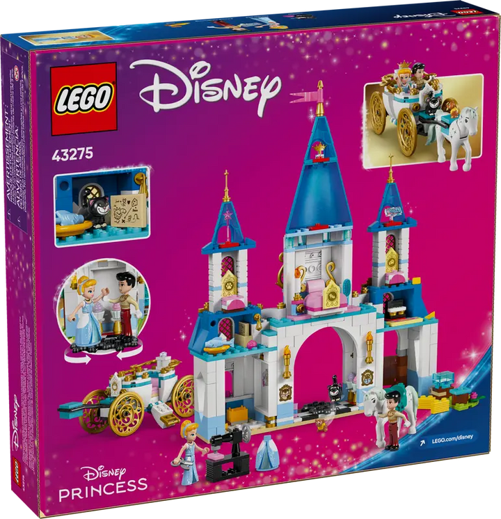 Kick-start endless fantasy play and stories for kids aged 6 and up with this LEGO® ǀ Disney Princess Cinderella’s Castle & Horse Carriage (43275) building set toy. The set includes a buildable 2-level castle playset featuring a ballroom with spinning floor, a sewing room and 3 rooms upstairs. Attached to the castle, there’s a stable with hay and a saddle for the LEGO ǀ Disney horse figure. There’s also a carriage with a harness and room for LEGO ǀ Disney mini-doll figures Cinderella and Prince Charming, plus LEGO ǀ Disney animal figures Lucifer and Gus, and many play accessories.