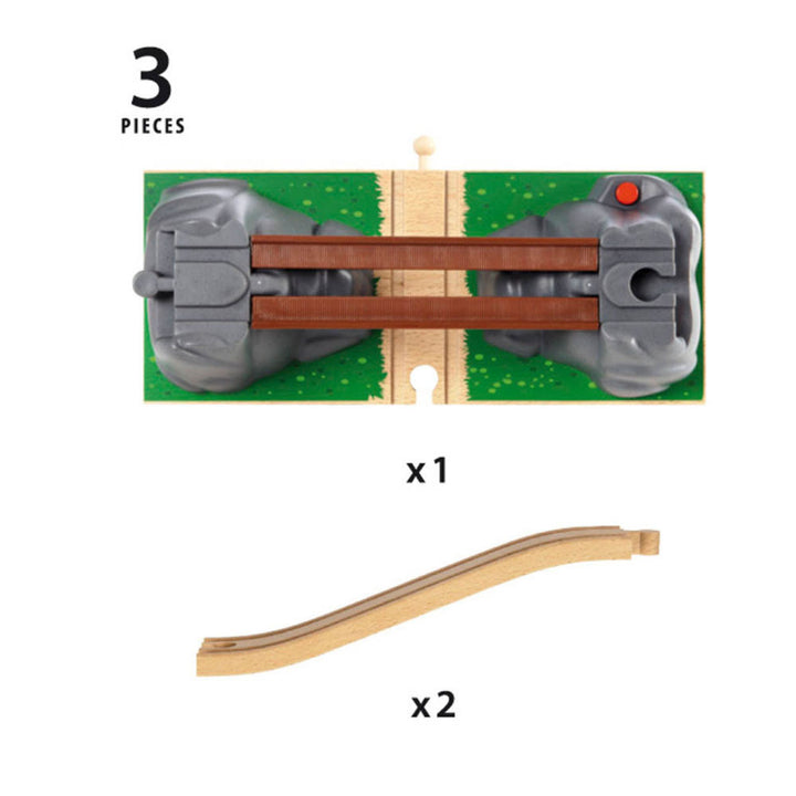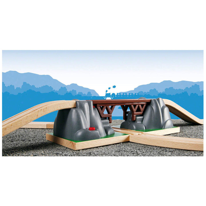 Build the bridge into your existing railway designs and enjoy driving trains over and under the bridge. Use the two ascending wooden tracks included help you to get up and over the bridge and the lower level track built into the base to pass under.