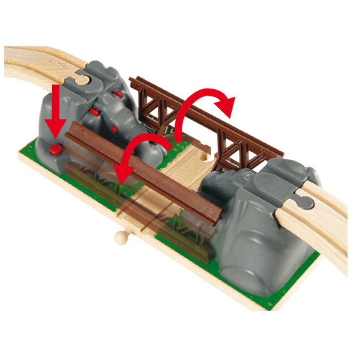 Passing trains drivers need to be careful though. If you press the red button that’s next to the bridge, it will quickly collapse, causing the train to fall to the canyon below. But don’t worry. You can simply put the bridge back together and the adventure can start all over again.
