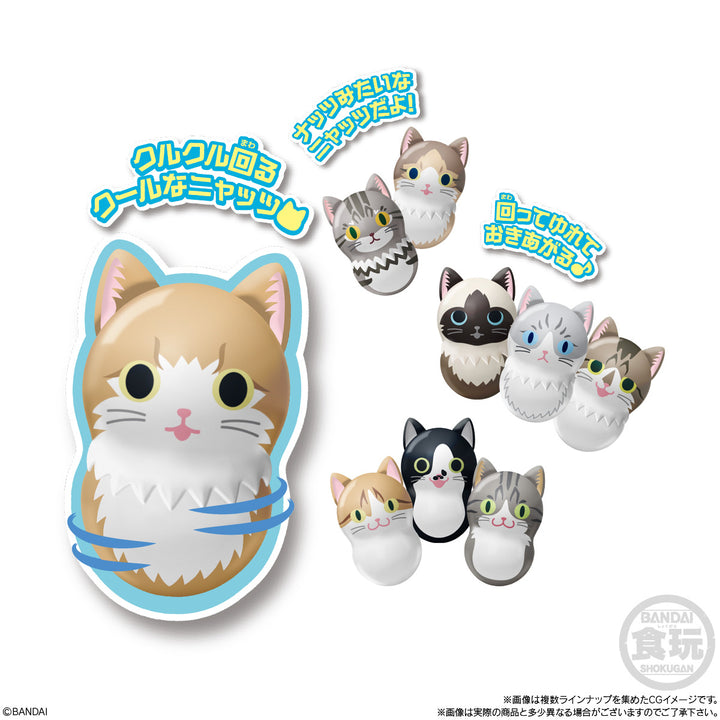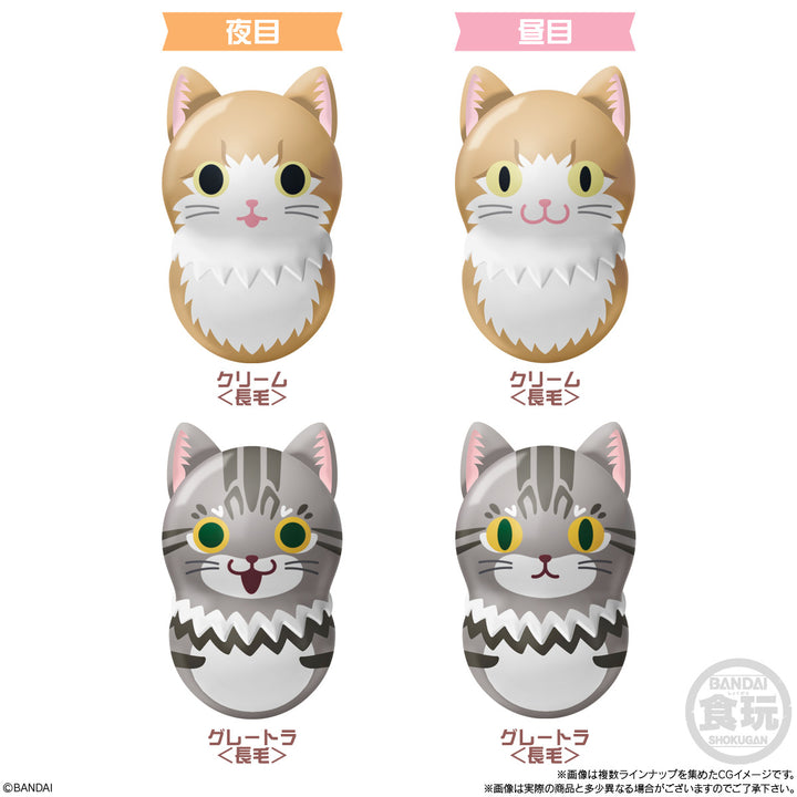 Bandai brings us the second release of their "Coo'nyats" nut-shaped figures in feline form! The lineup includes six long-haired cats with fluffy collars and three short-haired cats with the same design as the first release! There are 20 different cats to collect and trade -- 18 with "night eyes" and "day eyes," and two rare secret figures! They're fun to scatter along your shelf, tuck into your pocket and take with you everywhere, or spin around! Each one comes with a piece of soda-flavored gum, and they're randomly packed in boxes of 14.