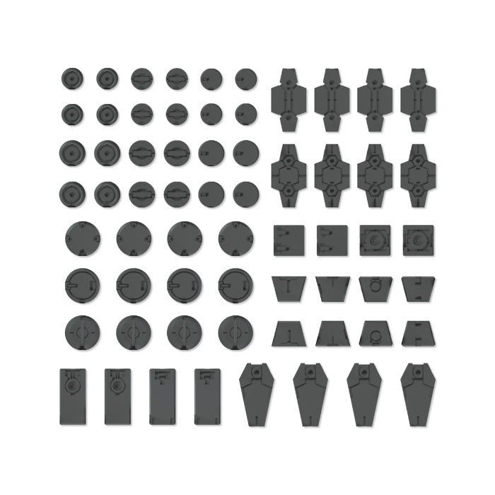 Bandai adds a set of new decoration parts to their "30MM" (30 Minutes Missions) model-kit lineup! They're very simple to use, so even beginners can easily add details to their kits! They're made in a highly versatile gray color; you can use them to cover the unused joint holes on your kit to increase the density of the armor. The detailed mold expression of each part adds a mechanical feel; they're available in both round and square shapes, and attach easily with an exclusive adhesive sticker. Order yours today!