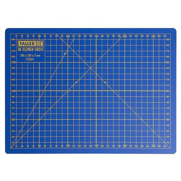 Clever working pad! Protects the surface of tables and simultaneously avoids affecting the sharpness of your modeller’s knife. That high-quality long-lasting mat is provided with an horizontal and vertical grid in cm and the printed FALLER logo. The sandwich structure of the material closes by itself after cuts.