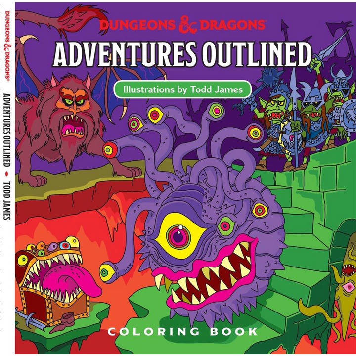 Get your first glimpse into the world of Dungeons & Dragons, through the masterful illustrations of Todd James. The Dungeons & Dragons Adventures Outlined coloring book features fantastical designs and shows off classic monsters from the game as seen through the eyes of world renowned artist, Todd James. Color your way through each adventure with these delightful illustrations. This coloring book features unique designs including beholders, trolls, goblins, dragons, and more. Provides hours of creativity, fun, and relaxation.
