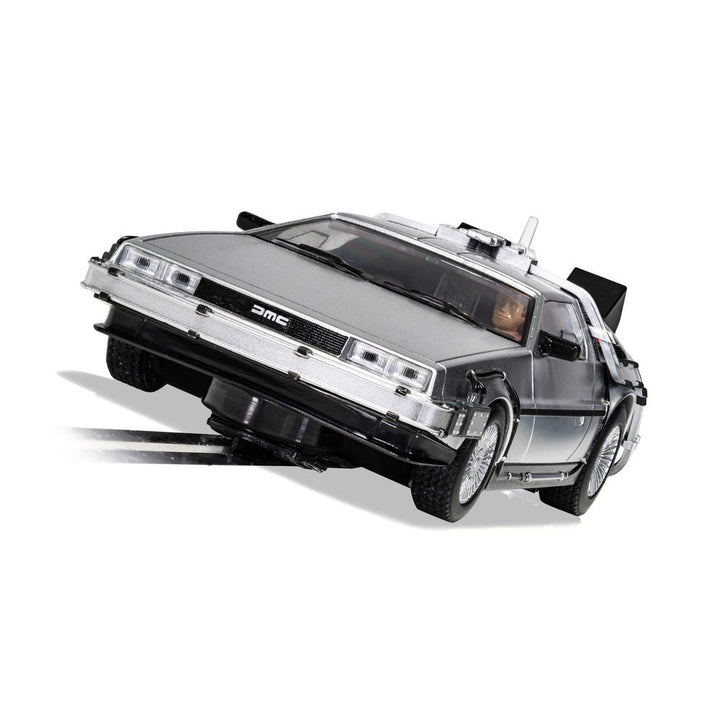 Are you ready to go Back To The Future? Hobbyco presents this highly detailed Scalextric DeLorean- Back to the Future Part II slot car to celebrate over 35 years since the iconic film was released in 1985. Invented by Doc, this time machine car is the most recognizable car in cinema history. Bring the DeLorean to your Scalextric race track today or keep it as a collector's item. Which one will it be? Don’t miss out on this nostalgic piece of history. Please note that the DeLorean does not fly, however, this collectible is a big hit for all Back To The Future fans and slot car enthusiasts alike. This set includes digital plug-ready features (Digital Plug not included), easy change pick-ups, high detail, magnatraction, working rear lights, and xenon effect headlights.