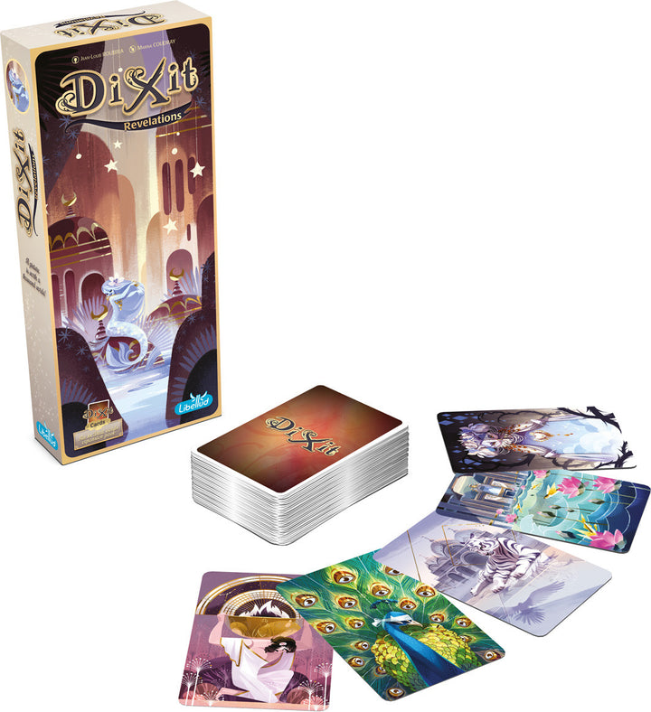 Myths come alive and masks fall away in Dixit: Revelations, an expansion for the award-winning game of art and storytelling, Dixit. Featuring all-new art by French illustrator and visual animation developer Marina Coudray, Dixit: Revelations takes you to ancient worlds full of modern technology and urban settings full of enchantments. Influenced by the artistic styles and movements of the early twentieth century, including Art Deco, Cubism, Fauvism, and Surrealism, Coudray’s timeless illustrations are certain to inspire Dixit players of all ages.