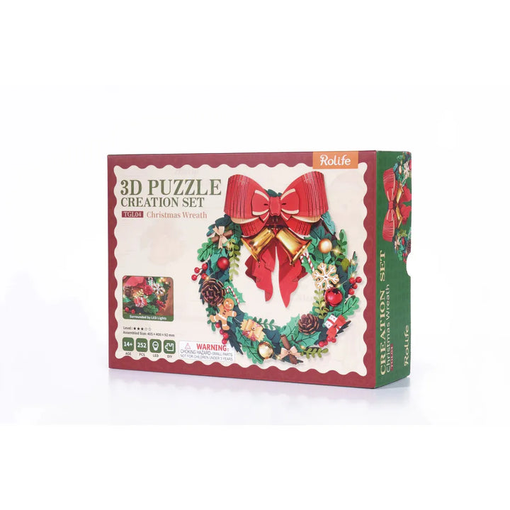 Deck the halls with the Rolife Christmas Wreath DIY 3D Wooden Puzzle (TGL04)! This festive light-up holiday decoration combines the timeless charm of a Christmas wreath with the hands-on joy of a wooden puzzle. Perfect for teens, adults, and holiday enthusiasts, this kit lets you build a stunning, LED-lit wreath that adds a cozy glow to your seasonal decor.