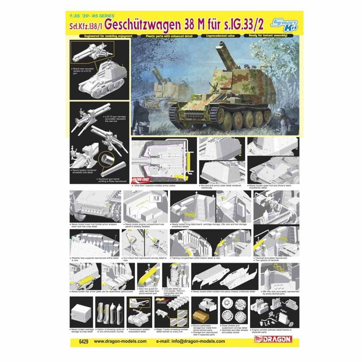 Dragon Models 6429 1/35 Sd.Kfz.138/1 Geschutzwagen 38 M fur s.IG.33/2 Plastic Model Kit
