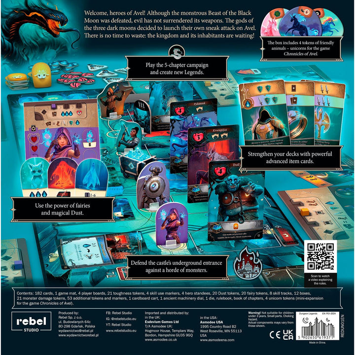 Dungeon Legends is a cooperative, standalone card-based game set in the world of Chronicles of Avel. Throughout the game, you'll take on the roles of heroes embarking on a dangerous mission deep into the dark dungeon. A fully replayable campaign of 5 engaging chapters awaits you, where you must reach the deepest depths and defeat the evil lurking there, whilst preventing monsters from reaching the Castle.