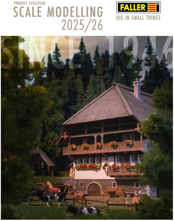 The Faller Catalogue 'Scale Modelling' 2025/2026 is the comprehensive guide for model builders and diorama builders looking for the latest scenery, buildings and accessories . This English-language catalogue offers a complete overview of the Faller range for 2025 and 2026 , including new releases, classics and innovative model building kits . Perfect for fans of model railways, landscaping and architectural miniatures .