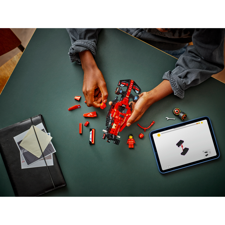 - 1 minifigure – This vehicle set includes a driver minifigure wearing a special Ferrari outfit and a winged helmet for kids to place inside the cockpit and role-play thrilling race action