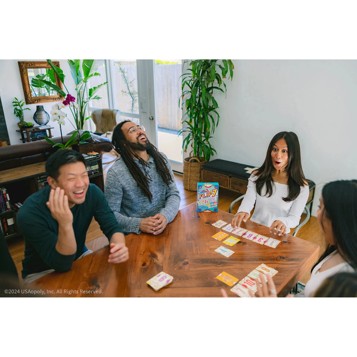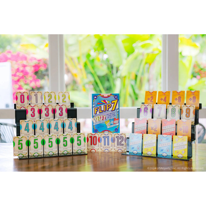 Sound easy? Think again! This isn't just any deck of cards… In Flip 7™ there's only one 1 card, two 2's, three 3’s, etc. plus a bunch of special cards that can score you extra points, give you a second chance, or freeze you or your opponents in your tracks.