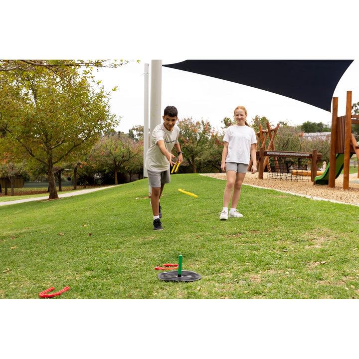 - Durable Rubber Construction: The horseshoes are made of high-quality rubber, ensuring long-lasting play.