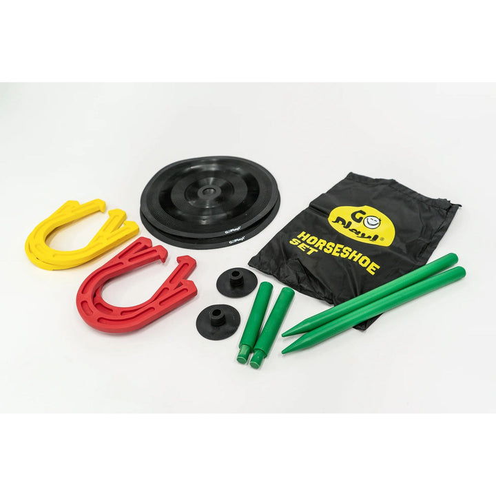Gather your friends and family and enjoy the classic game of horseshoes with the Go Play! Rubber Horseshoe Set.